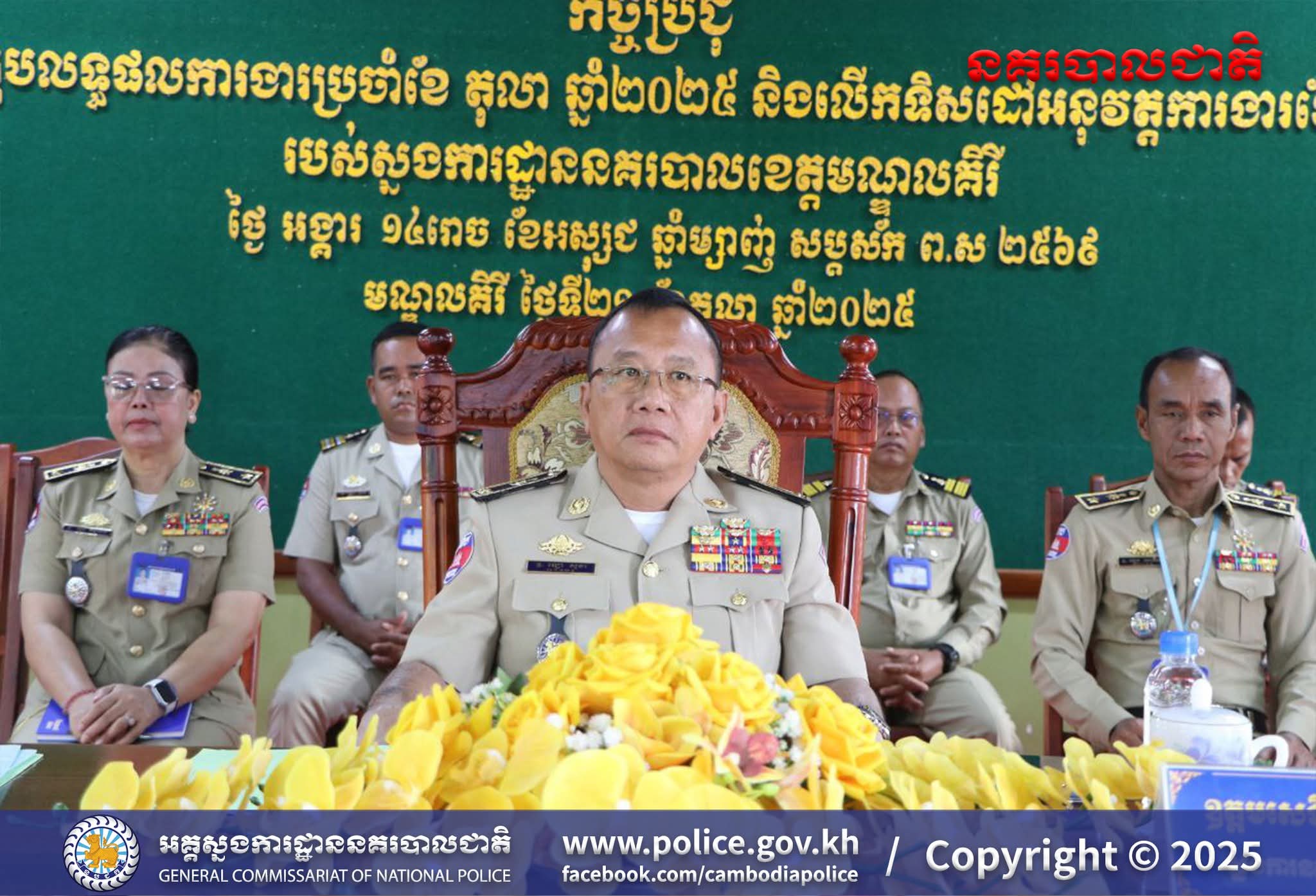 លោកឧត្តមសេនីយ៍ទោ ឡោ សុខា ស្នងការនគរបាលខេត្ត មណ្ឌលគិរីអញ្ជើញជាអធិបតី បើកកិច្ចប្រជុំត្រួតពិនិត្យការងារ ប្រចាំខែតុលា ឆ្នាំ២០២៥ និងលើកទិសដៅអនុវត្តការងារនាខែខាងមុខ